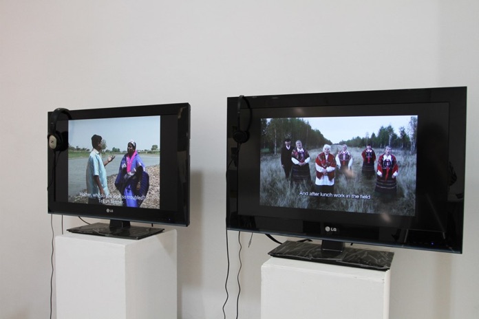 Untitled (Broniów Song) (2011) is a collaboration between Alicja Rogalska and Polish folk-group Broniowianki making a ‘contemporary’ folk song looking at unemployment in rural Poland after entering the EU. Both the artist and folk group were interviewed, discussing politics of representation and providing contrasting views of the project.