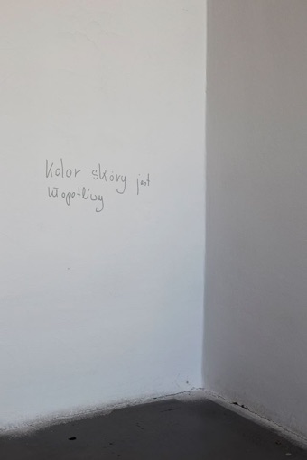 The workshop with Roma and non-Roma children from Primary School No.16 in Bytom Bobrek was held as part of ‘Where I was Not’ project. The words of these children have become part of the installation.